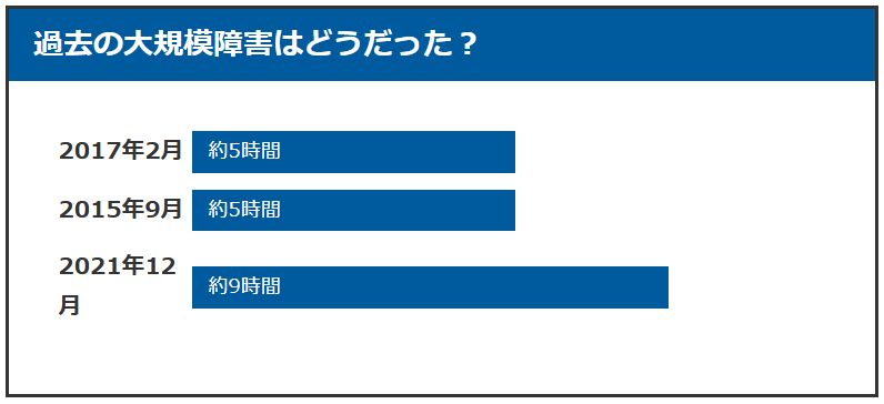 実は、AWSでは過去にも同じような大規模障害が何度か起きています。その時は、だいたい3時間から6時間くらいで復旧していました。