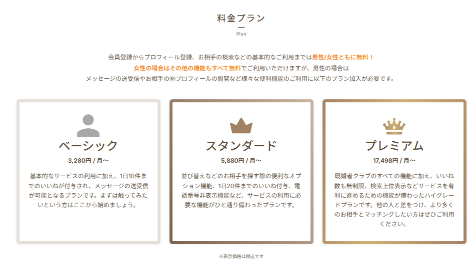 引用元: 既婚者クラブの料金プランを徹底解説(セカンドパートナーがいる令和の暮らし)