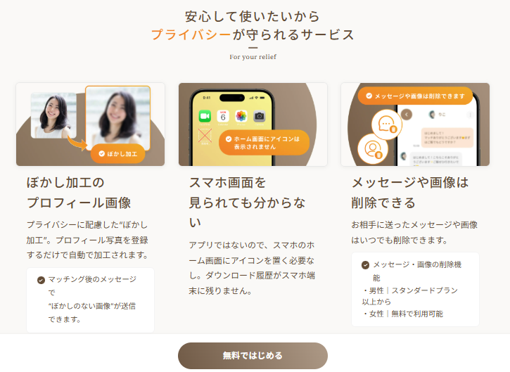 | ✅ スマホにアイコンが残らない ✅ プッシュ通知が来ない ✅ 履歴を消せば証拠が残らない |