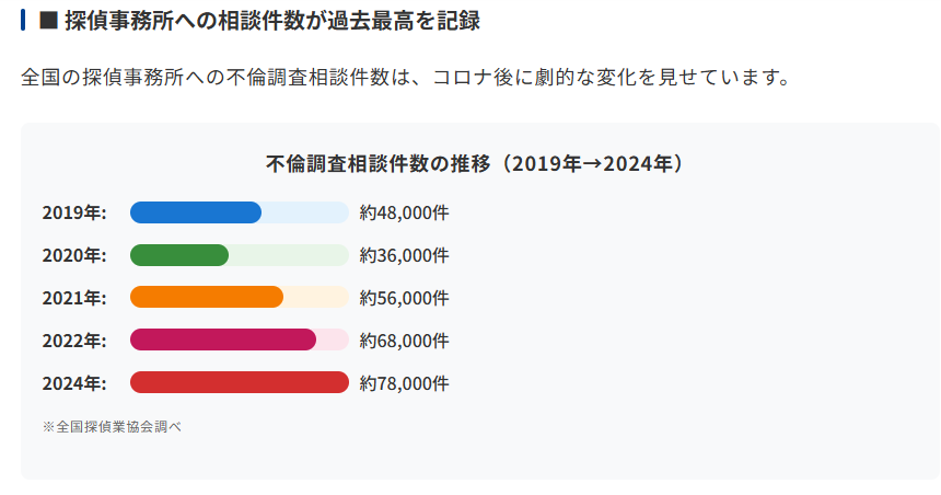 | 不倫全般の調査 | 前年比+30% | 約72% |