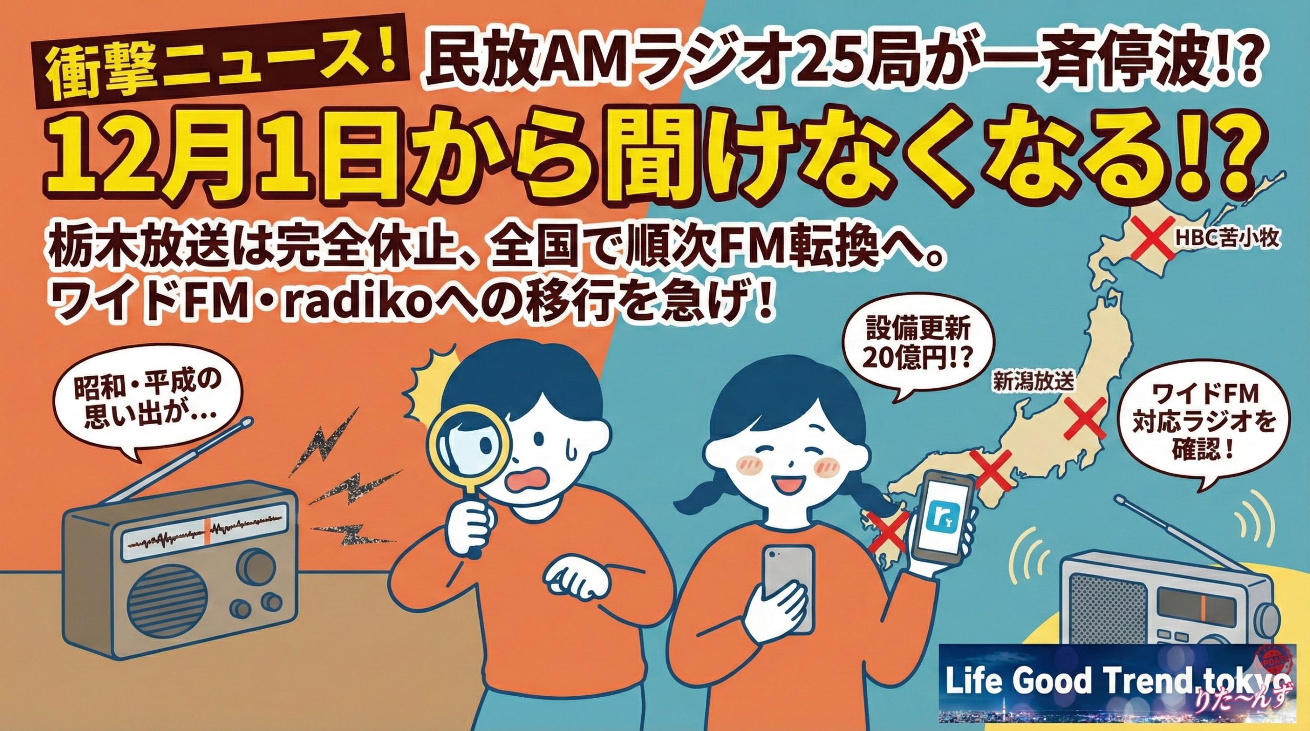 【速報】AMラジオ25局が本日停波!対象地域と今すぐできる対処法