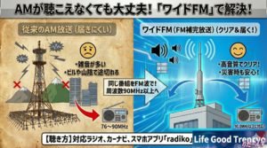 AM停波後も同じ番組を聴く方法として、まずおすすめなのがワイドFM(FM補完放送)です。