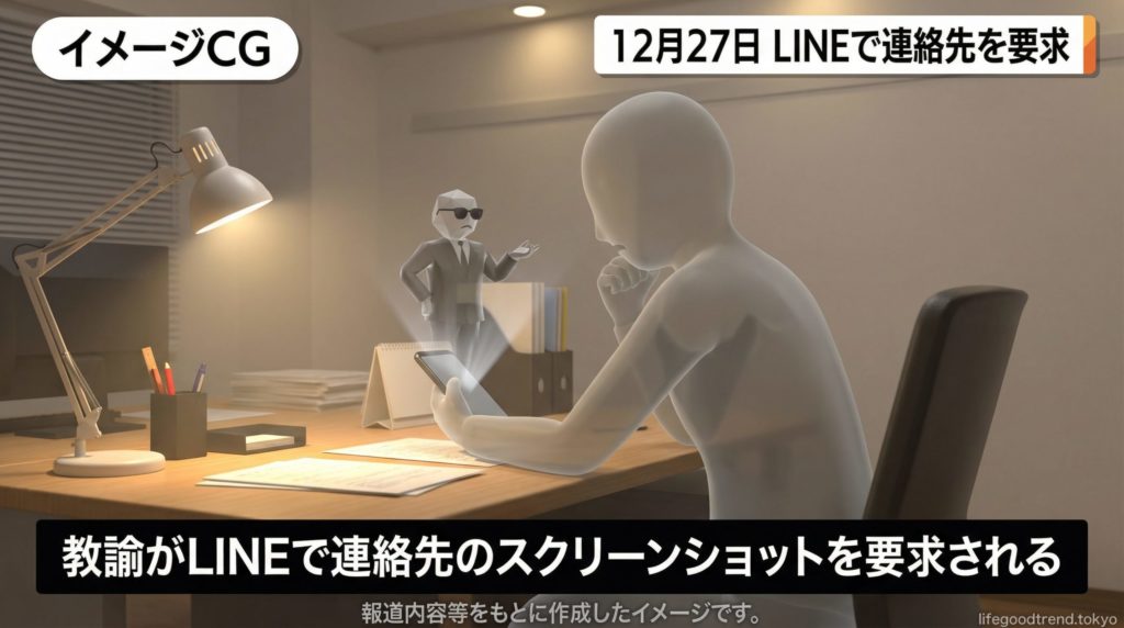 2025年12月27日、恵庭南高校の教諭が「消費者金融業者」から借り入れを行う際に、LINEの「端末の連絡先」一覧のスクリーンショットを提供するよう求められました。
