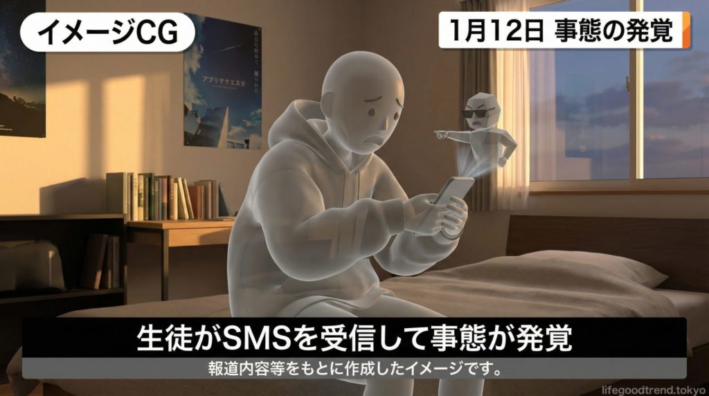そして2026年1月12日、生徒1人が業者からショートメールを受信したことで事態が発覚しました。